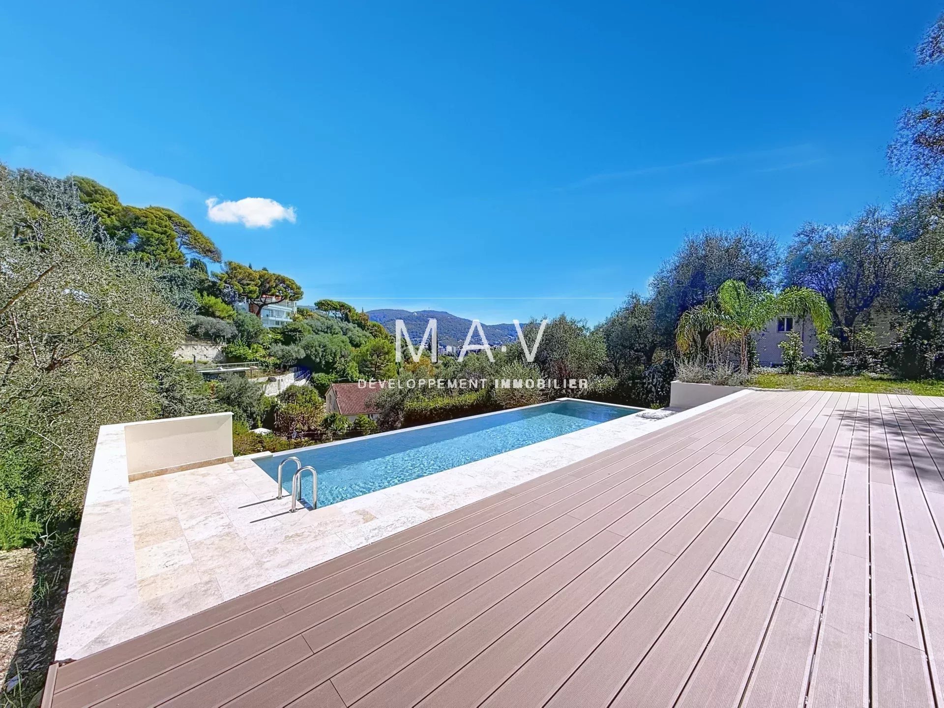 Outdoors, the setting is simply exceptional. Enjoy unobstructed views and optimal sunshine thanks to a dual south/east exposure. The 1600 m² plot houses a superb infinity pool and a unique living space on a 139 m² rooftop terrace offering breathtaking views.